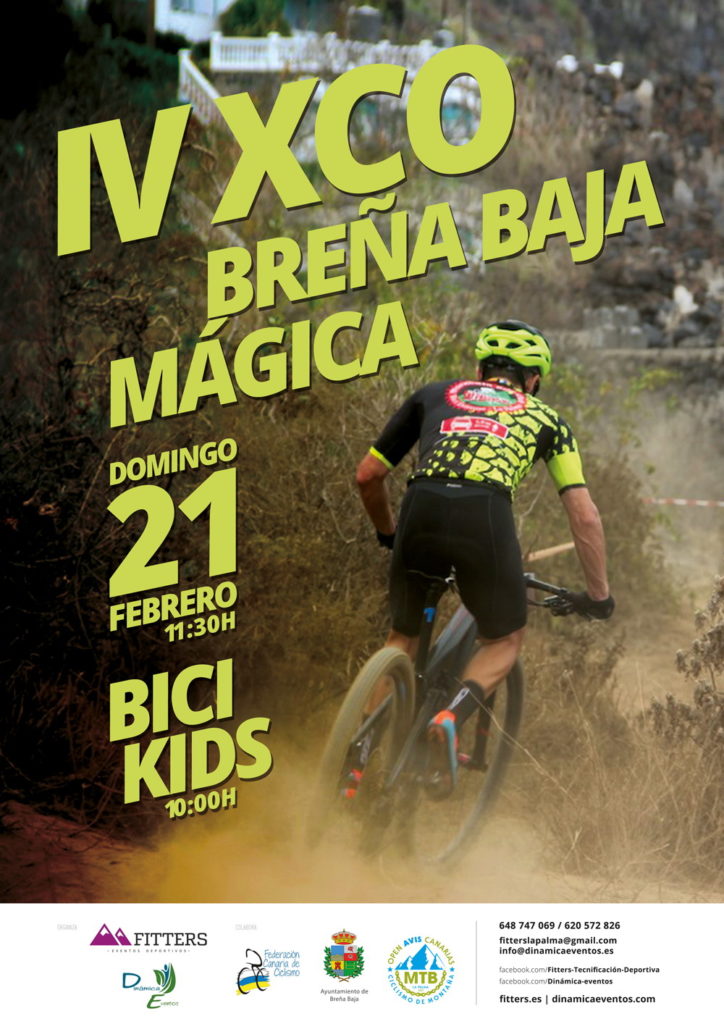 El próximo 21 de febrero, el Ayuntamiento de Breña Baja, la empresa FITTERS La Palma y la empresa DINÁMICA EVENTOS organizadora de eventos deportivos, presentan la cuarta edición de la XCO Breña Baja Mágica en los Cancajos, prueba de MTB. Una prueba diferente y una propuesta interesante para todos/as los amantes de la mountain bike que se decidan a participar en una carrera espectacular en un circuito cerrado, asequible para cualquier deportista y visible para el espectador/a. Prueba de moutain bike que entra en el Open Avis Canarias MTB La Palma.
